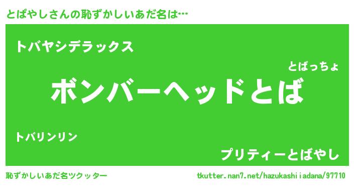 | ヒーロー風カッコイイあだ名 | 『慈愛の使者とばやし』『天弓騎士トバ』 |