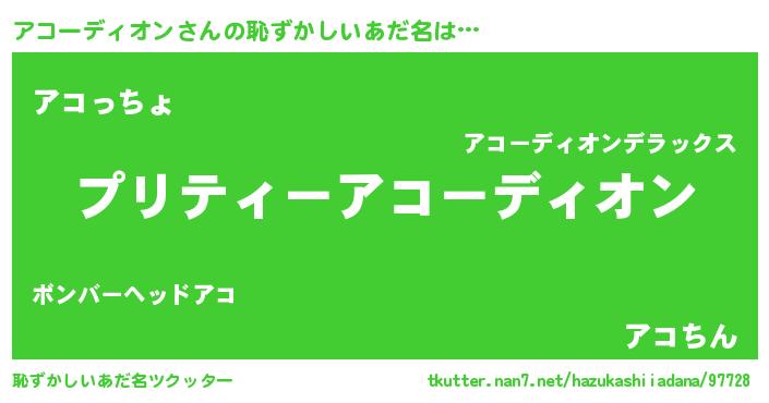 | 男性向けラノベタイトル風あだ名 | 『アコーディオンアートオンライン』 |