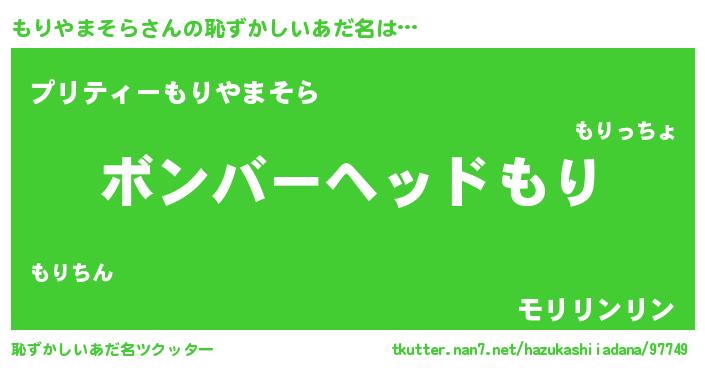 | 男性向けラノベタイトル風あだ名 | 『この素晴らしい世界にもりやまそらを!』 |
