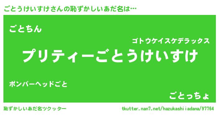 | 男性向けラノベタイトル風あだ名 | 『ごとうけいすけの憂鬱』 |