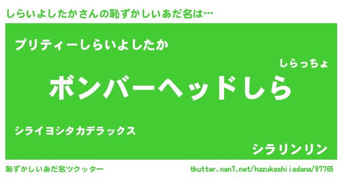 | 欧米人風あだ名 | 『しらいよしたか・ステッグマイヤー』 |