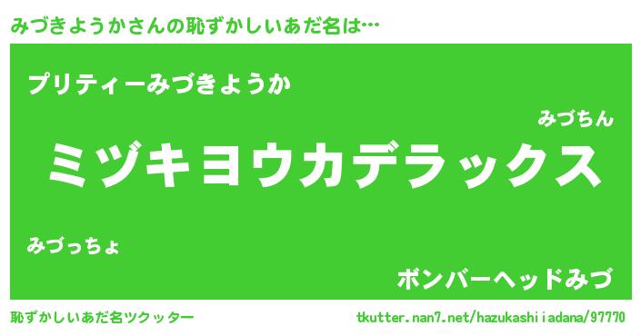 | 男性向けラノベタイトル風あだ名 | 『ミヅキヨウカスレイヤー』 |