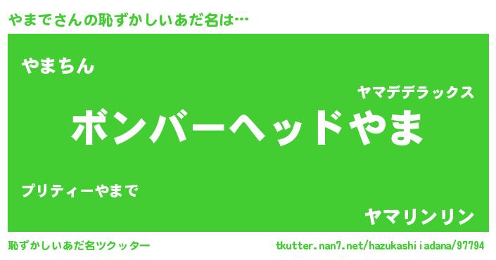 | ヘコむあだ名 | 『やまで(笑)』『やまっちょ』『豆乳』 |