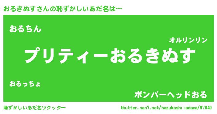 | ヘコむあだ名 | 『おるっふぃ~』『おるきぬす(笑)』 |