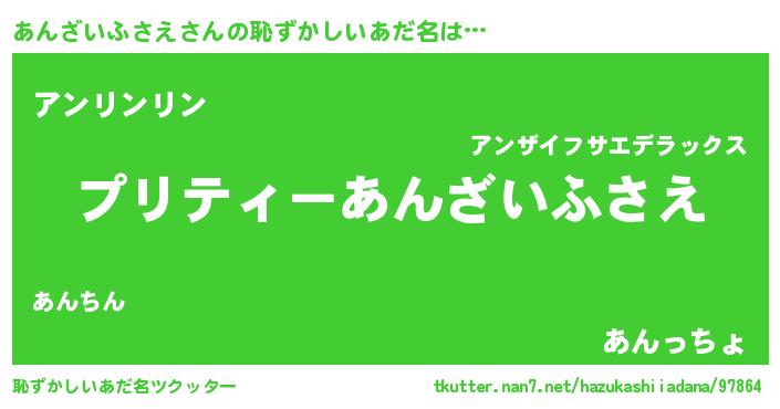 | 男性向けラノベタイトル風あだ名 | 『転生したらあんざいふさえだった件』 |