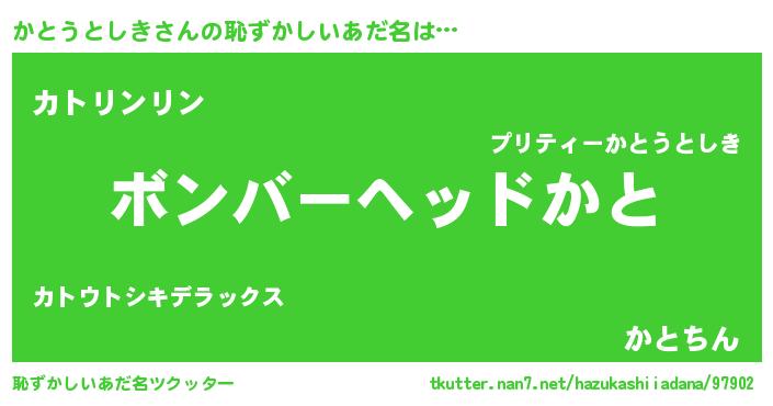 | ヘコむあだ名 | 『かとぷりん』『かとうとしき(笑)』 |