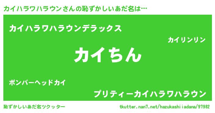| ヘコむあだ名 | 『カイハラワハラウン(笑)』『カイっふぃ~』 |