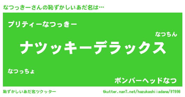 | 男性向けラノベタイトル風あだ名 | 『Re:なつっきーから始める異世界生活』 |