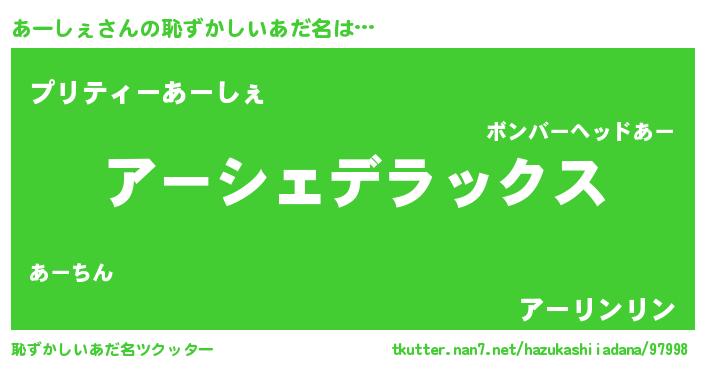 | 肩書あだ名 | 『あーしぇ船長』『あーしぇ中尉』 |