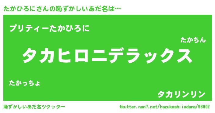 | 欧米人風あだ名 | 『たかひろに・ステッグマイヤー』 |