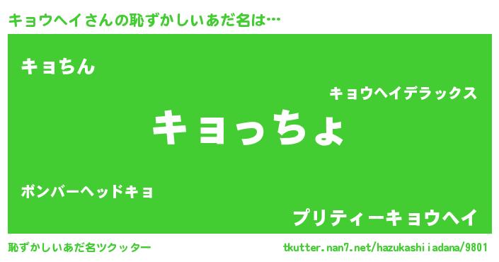 | 欧米人風あだ名 | 『キョウヘイクリステル』 |