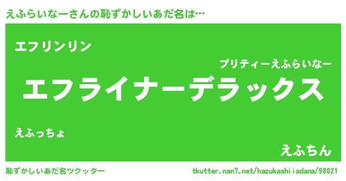 | 意味不明あだ名 | 『自称えふらいなー』 |