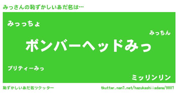 | ポケモン風あだ名 | 『ミッゴンZ』『ミックウザ』 |