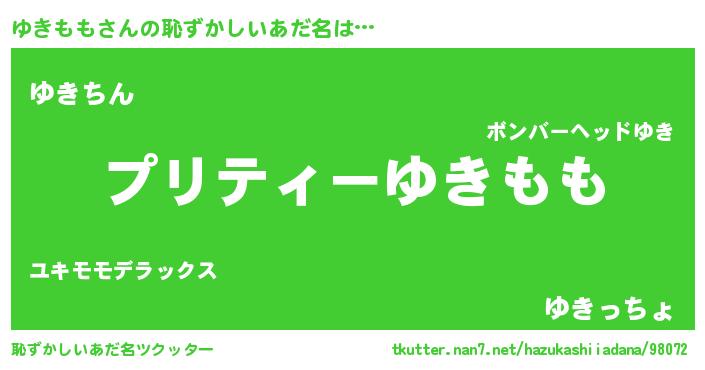 | 意味不明あだ名 | 『ペロリンゆきもも』『永久保存ゆきもも』 |