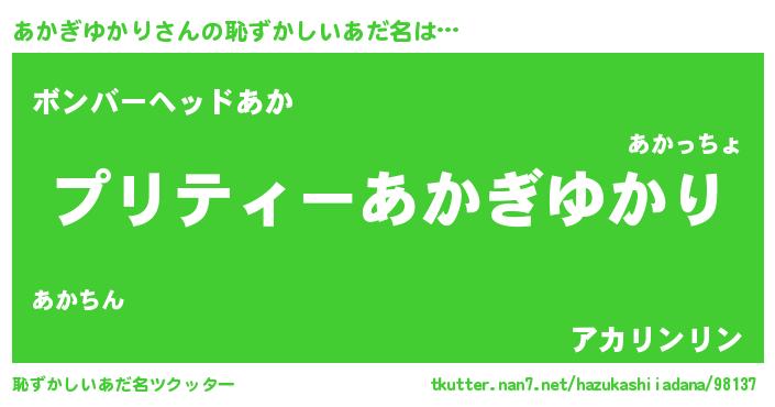 | ヒーロー風カッコイイあだ名 | 『仮面アカダー』『スーパーアカギユカリ』 |