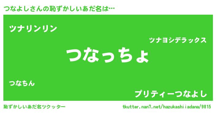 | ヒーロー風カッコイイあだ名 | 『仮面ツナダー』『ウルトラつなよしマン』 |