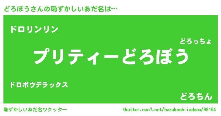 | 胡散臭い通販商品みたいなあだ名 | 『億万長者になれるブレスレット…その名も「どろぼう」』 |