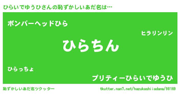 | ヘコむあだ名 | 『ひらいでゆうひ(苦笑)』『ひらにゅー』 |