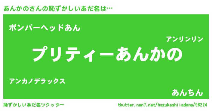| 意味不明あだ名 | 『ペロリンあんかの』『永久保存あんかの』 |