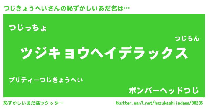 | 意味不明あだ名 | 『自称つじきょうへい』 |
