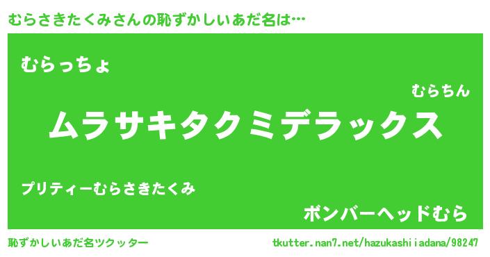 | 意味不明あだ名 | 『自称むらさきたくみ』 |