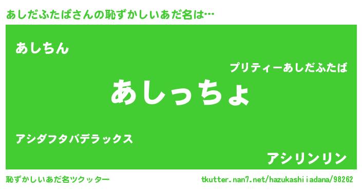 | 男性向けラノベタイトル風あだ名 | 『やはりあしだふたばの青春ラブコメはまちがっている 』 |