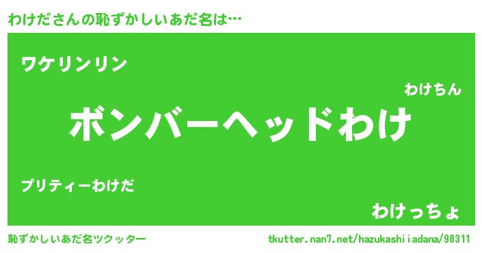 | ヒーロー風カッコイイあだ名 | 『正義の使者わけだ』『天弓騎士ワケ』 |