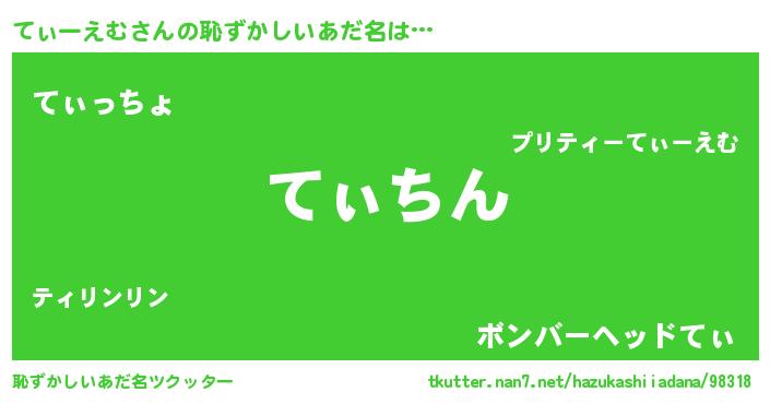 | ヘコむあだ名 | 『てぃーえむ(笑)』『牛乳』 |