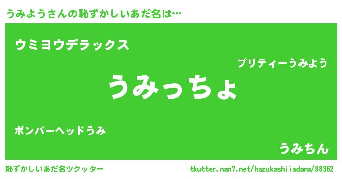 | 意味不明あだ名 | 『うみようフォーエバー』『自称うみよう』 |
