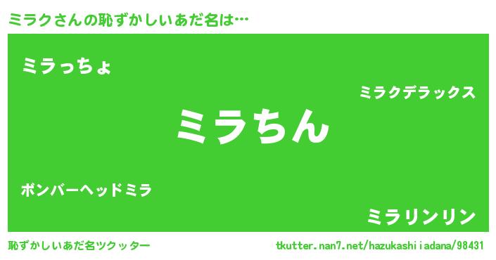 | 意味不明あだ名 | 『永久保存ミラク』『ミラクフォーエバー』 |