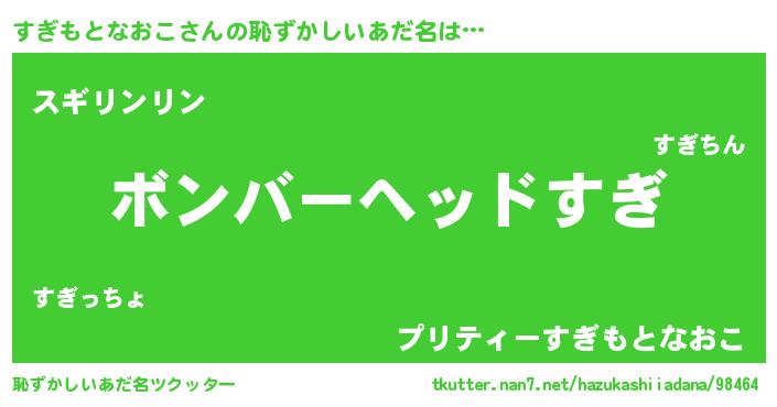 | 意味不明あだ名 | 『ヨモギ科すぎもとなおこ属』 |