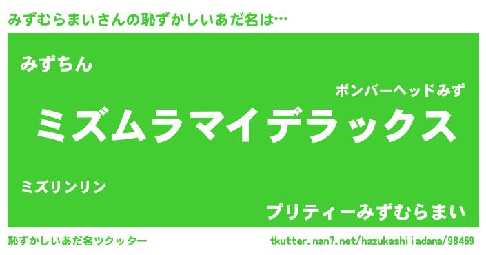 | 男性向けラノベタイトル風あだ名 | 『Re:みずむらまいから始める異世界生活』 |