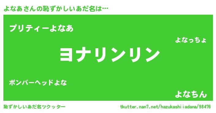 | ポケモン風あだ名 | 『ヒヨナア』『ヨナチュウ』 |