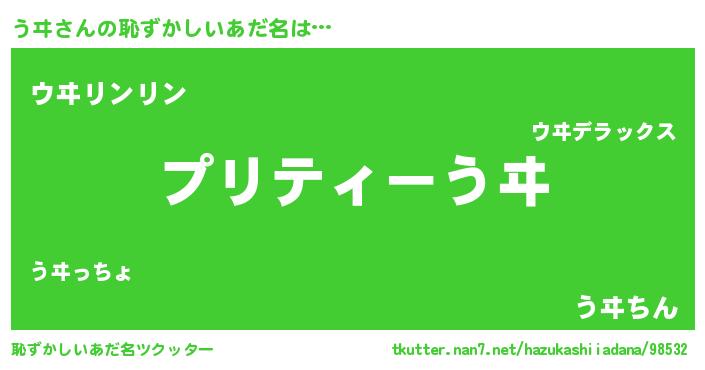 | 自動車の名前っぽいあだ名 | 『プリウヰ』『ウウディ』『デミウ』 |