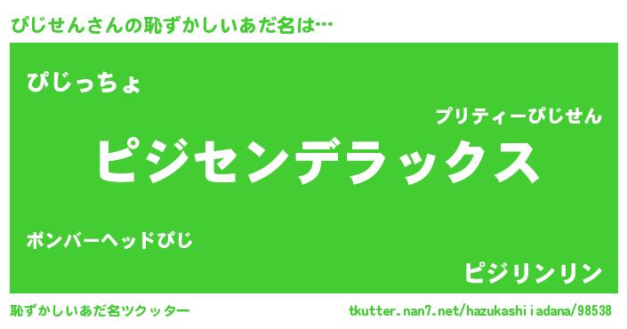 | ヒーロー風カッコイイあだ名 | 『サイバー戦士ピジセン』『仮面ピジダー』 |