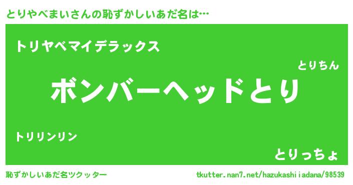 | 肩書あだ名 | 『とりやべまい教授』『とりやべまい大佐』 |