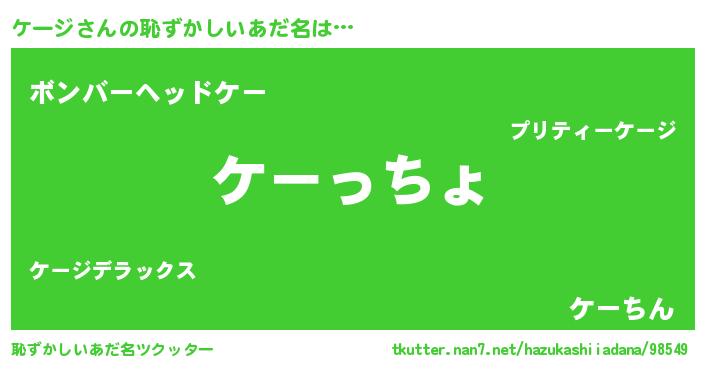 | ヒーロー風カッコイイあだ名 | 『ウルトラケージマン』『愛の使者ケージ』 |