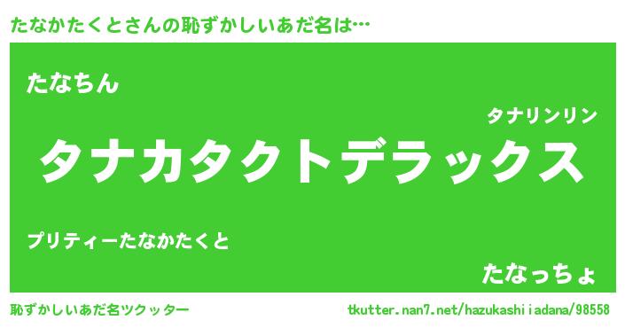 | ヒーロー風カッコイイあだ名 | 『最強戦士タナカタクト』『魔戒騎士タナ』 |