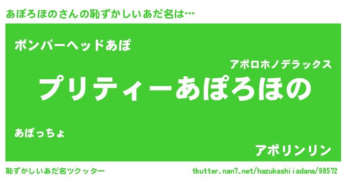 | 意味不明あだ名 | 『ペロリンあぽろほの』『自称あぽろほの』 |
