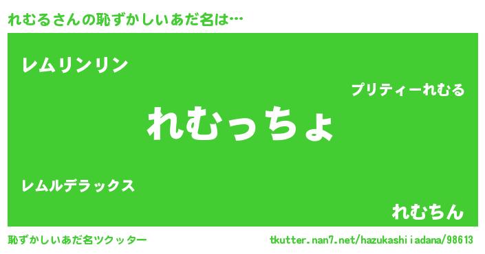 | ヒーロー風カッコイイあだ名 | 『ウルトラれむるマン』『魔戒騎士レム』 |
