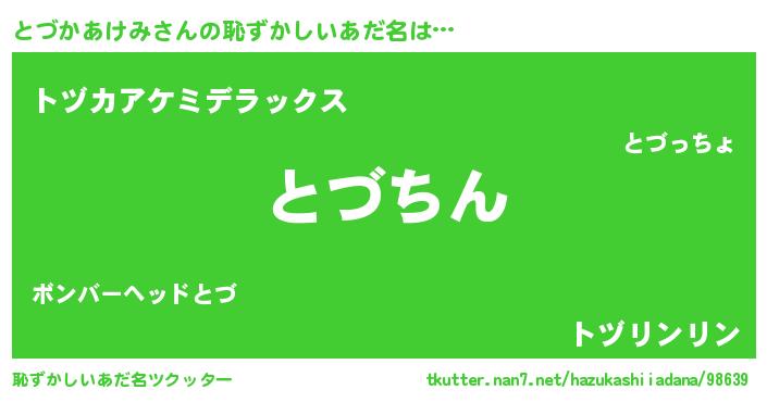 | 意味不明あだ名 | 『永久保存とづかあけみ』 |