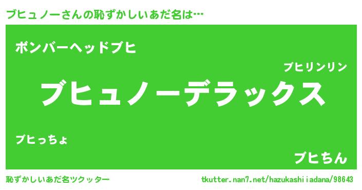 | 意味不明あだ名 | 『自称ブヒュノー』『永久保存ブヒュノー』 |
