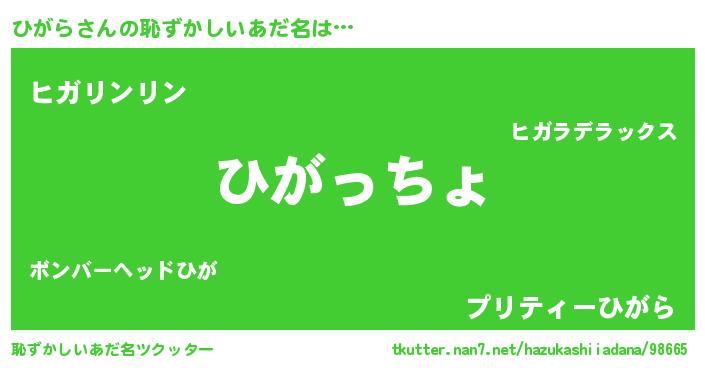| ポケモン風あだ名 | 『ヒーガイ』『ヒガラダネ』 |