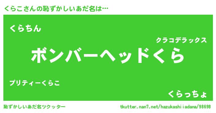 | ヘコむあだ名 | 『くらこ(笑)』『牛乳』『くらにー』 |