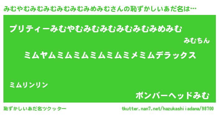 | ヘコむあだ名 | 『みむにゅー』『みむっぺ』 |