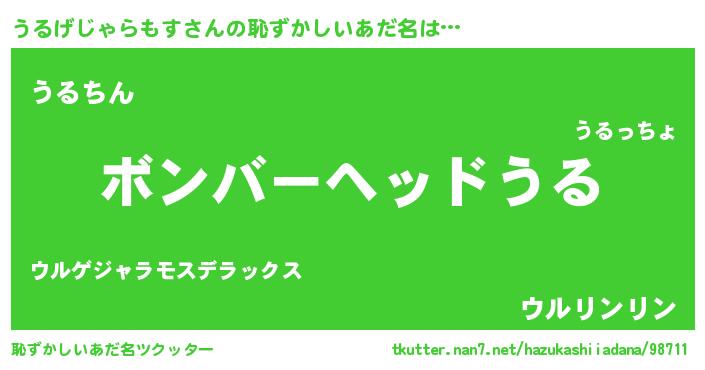 | ヘコむあだ名 | 『うるげじゃらもす(爆)』『うるっちょ』 |