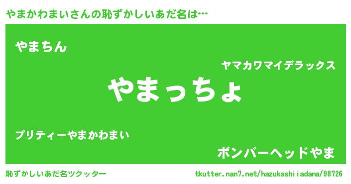 | 意味不明あだ名 | 『住所不定無職やまかわまい(12歳)』 |