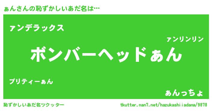 | ヒーロー風カッコイイあだ名 | 『仮面ァンダー』『正義の使者ぁん』 |