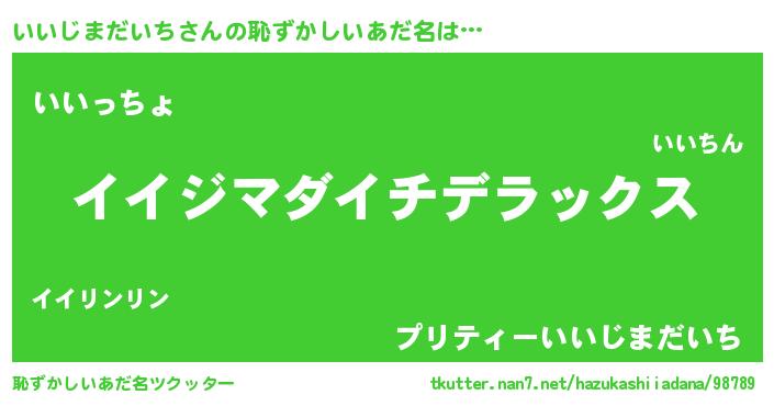 | 意味不明あだ名 | 『住所不定無職いいじまだいち(13歳)』 |