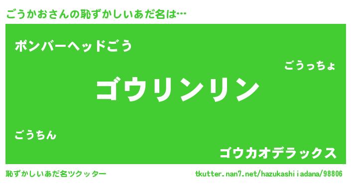 | ヒーロー風カッコイイあだ名 | 『銀牙騎士ゴウ』『慈愛の使者ごうかお』 |